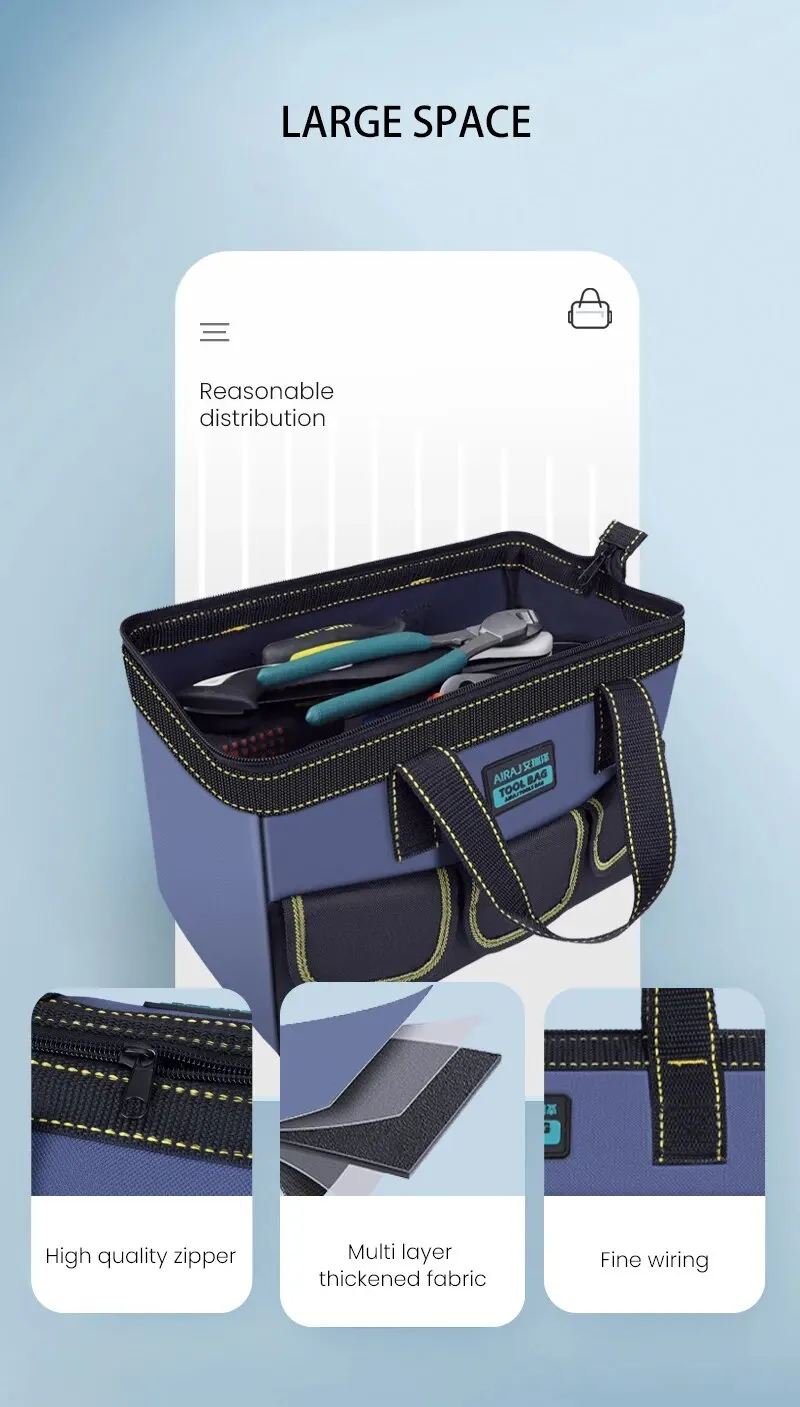 AIRAJ Multifunctional Tool Bag with Strong 1680D Oxford Cloth Waterproof Water and Electricity Work Bag Multiple Pockets Anti Fall Storage Bag