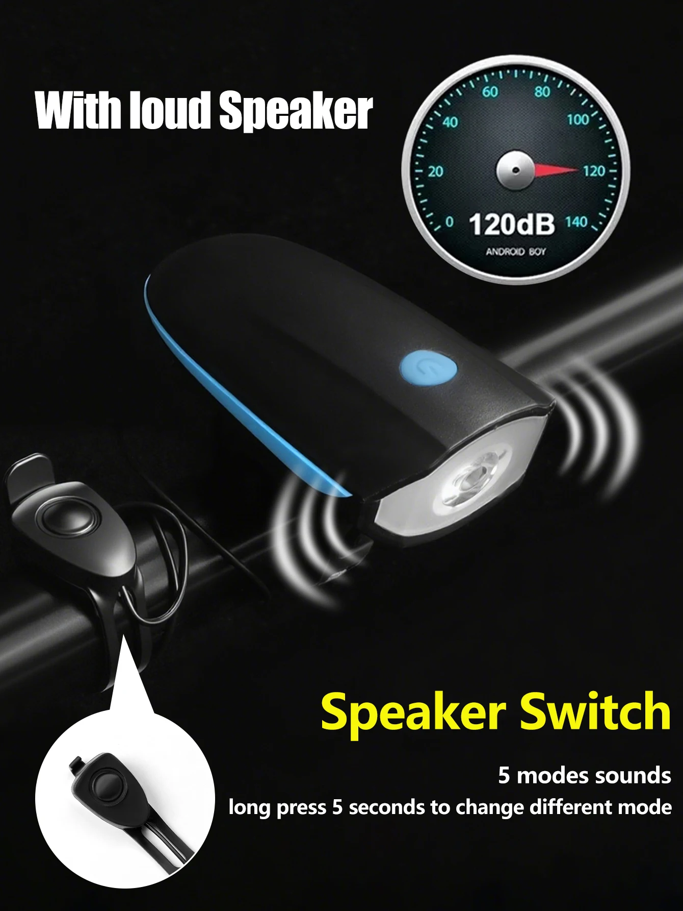Function:Bicycle Horn + Cycling Light
