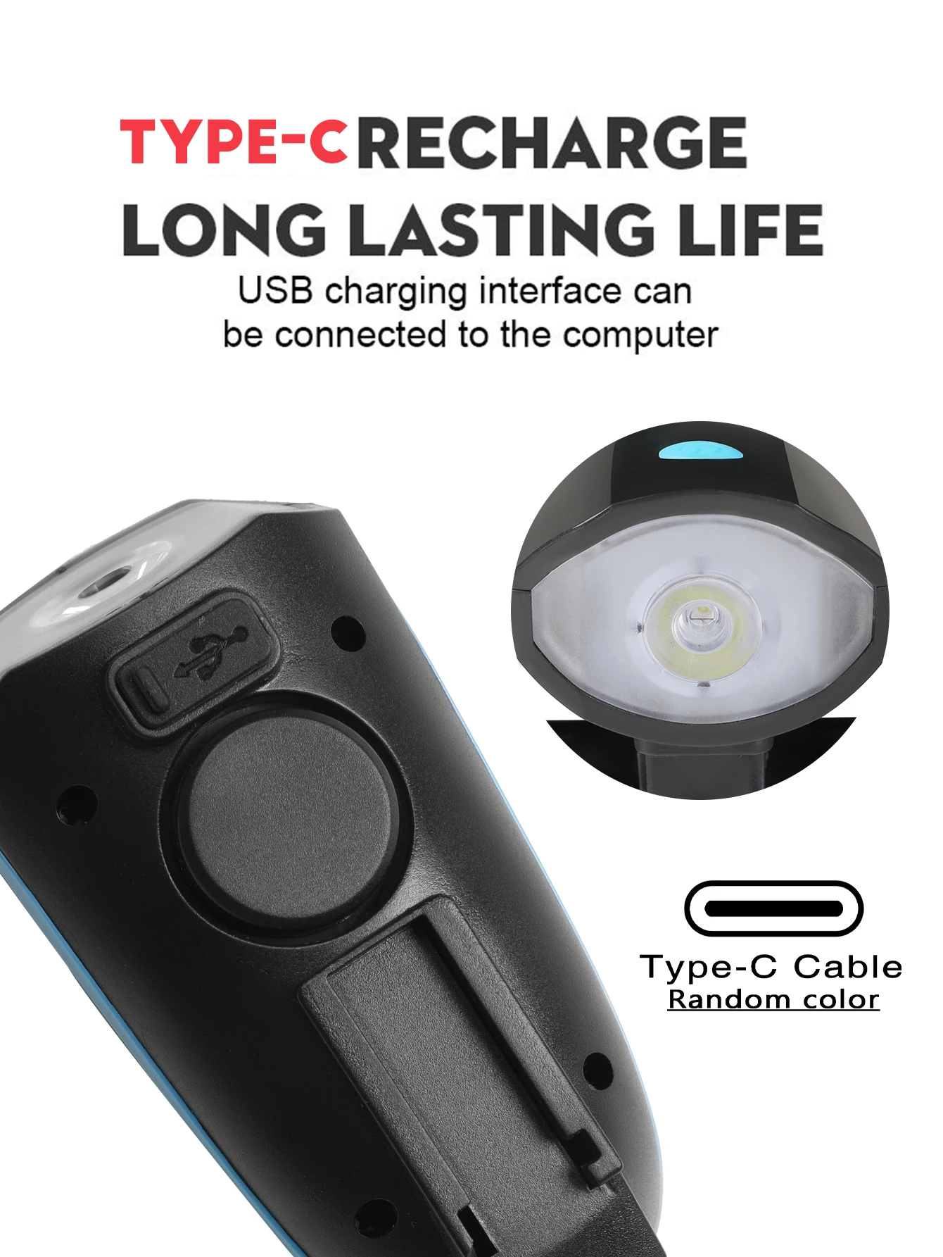 Fineed bike light and horn comes with a CHARGING CABLE that charges from your computer, power bank.