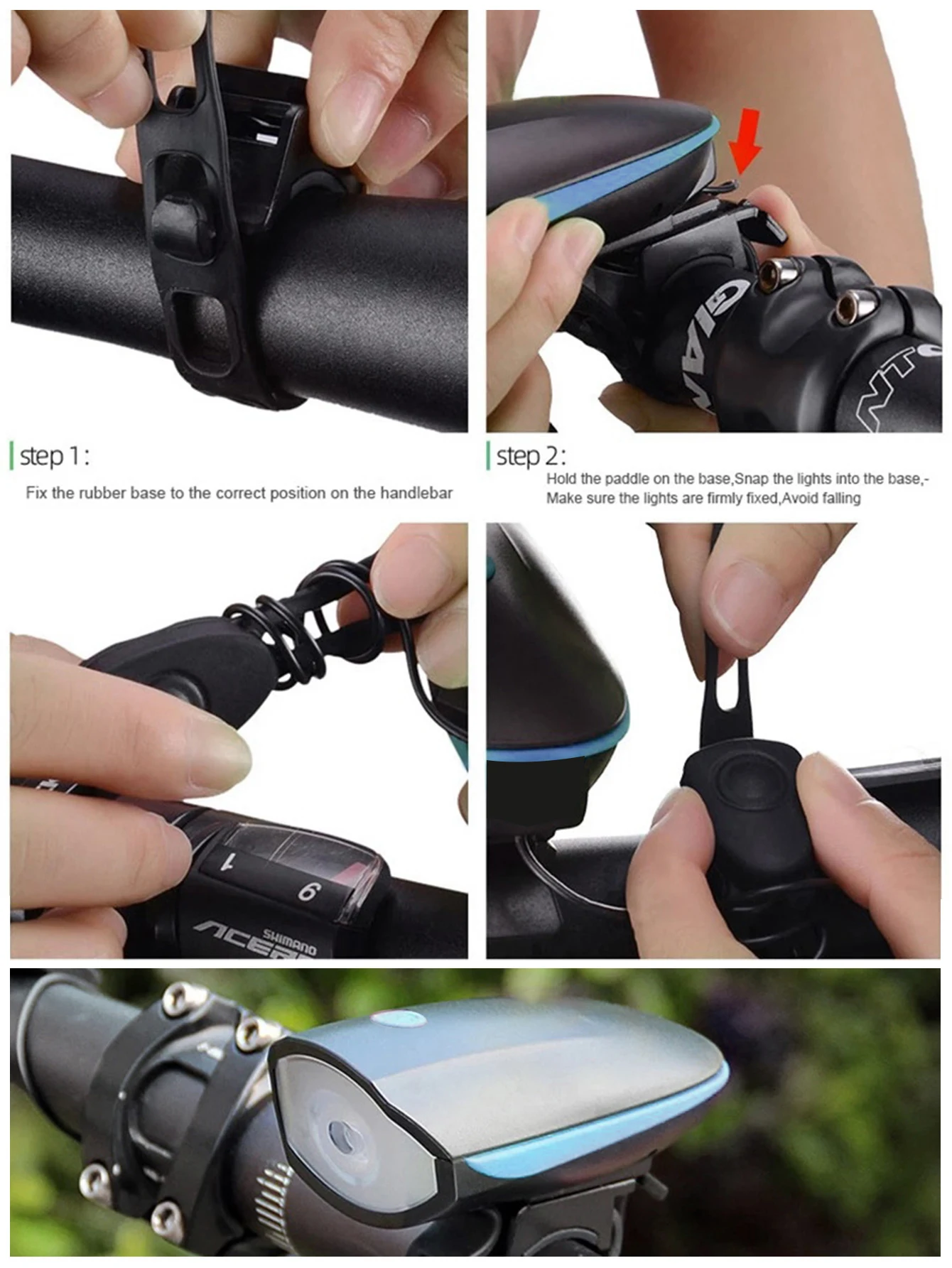 1. Silicone buckle aim at light Base,then push it,can be installed